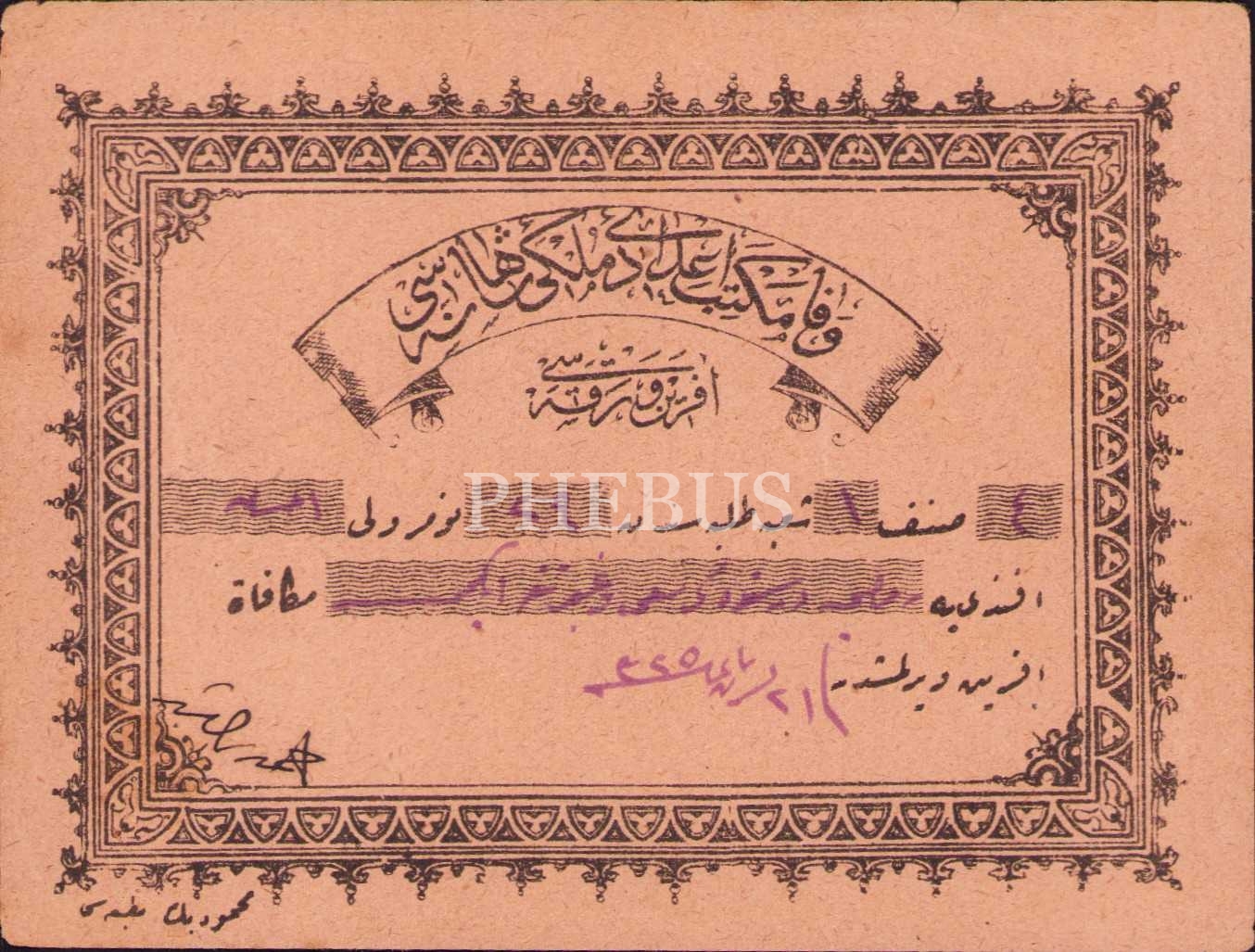Osmanlıca Vefa Lisesi aferin kağıdı, 1325, 9x11 cm
