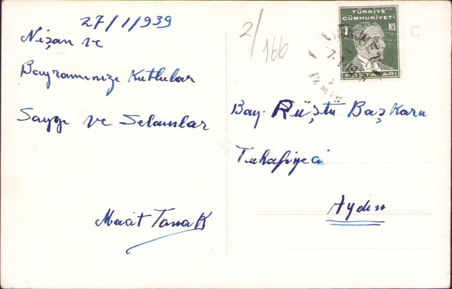 İzmir Enternasyonal Fuarı, 1939, Ed. Foto Cemal, arkası ithaflı ve pullu