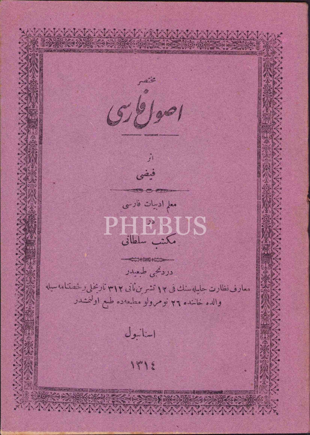 Osmanlıca-Farsça Muhtasar Usûl-i Fârsî, Muallim Feyzi, İstanbul 1314, 46 syf., 14x19 cm