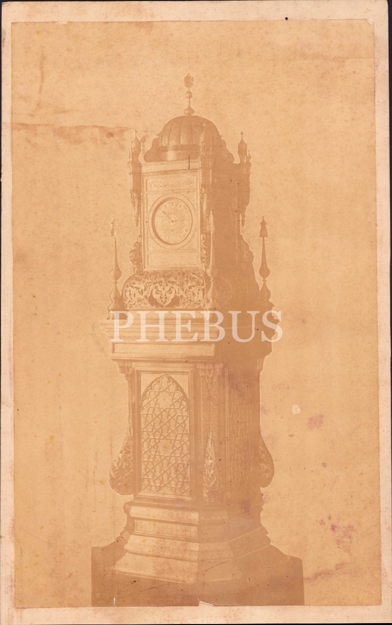 Osmanlı dönemi büyük boy saat fotoğrafı, üzeri Osmanlıca yazılı, 25x39 cm