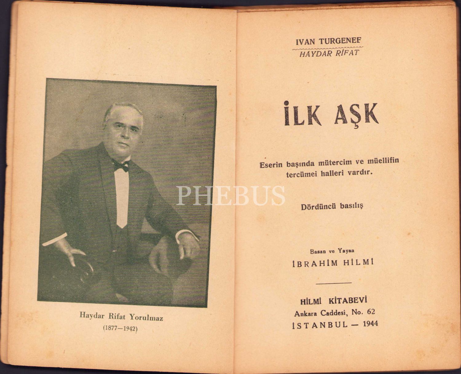 İlk Aşk, İvan Türgenef, Çeviren: Haydar Rıfat, Hilmi Kitabevi, 1944