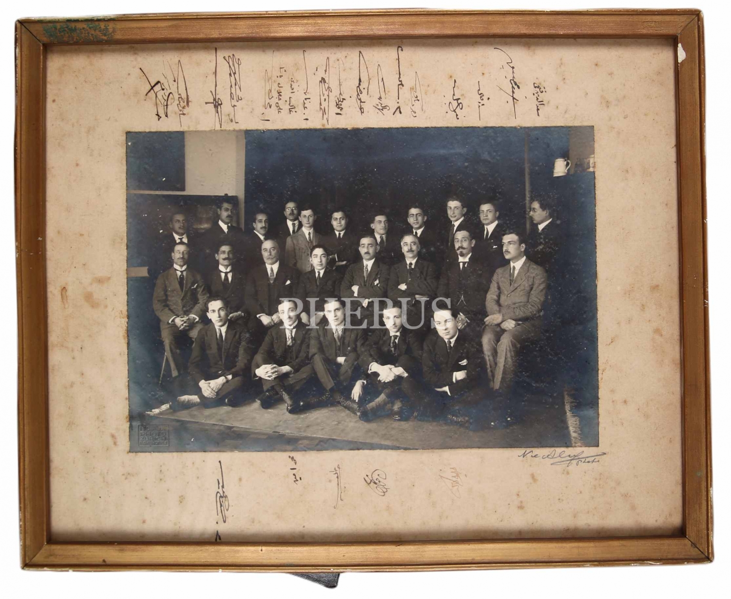 Nic Aluf Photo Zürich Bahnhoffle soğuk damgalı, Osmanlıca imzalı, paspartulu ve çerçeveli toplu hatıra fotoğrafı, 33x26 cm, çerçeve ayağı haliyle