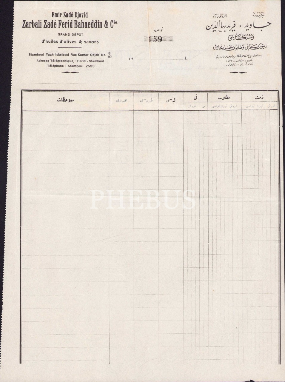 Emir Zade Djavid Zarbali Zade Ferid Bahaeddin & Cie - Stamboul antetli çift dilde boş evrak, 21x28 cm