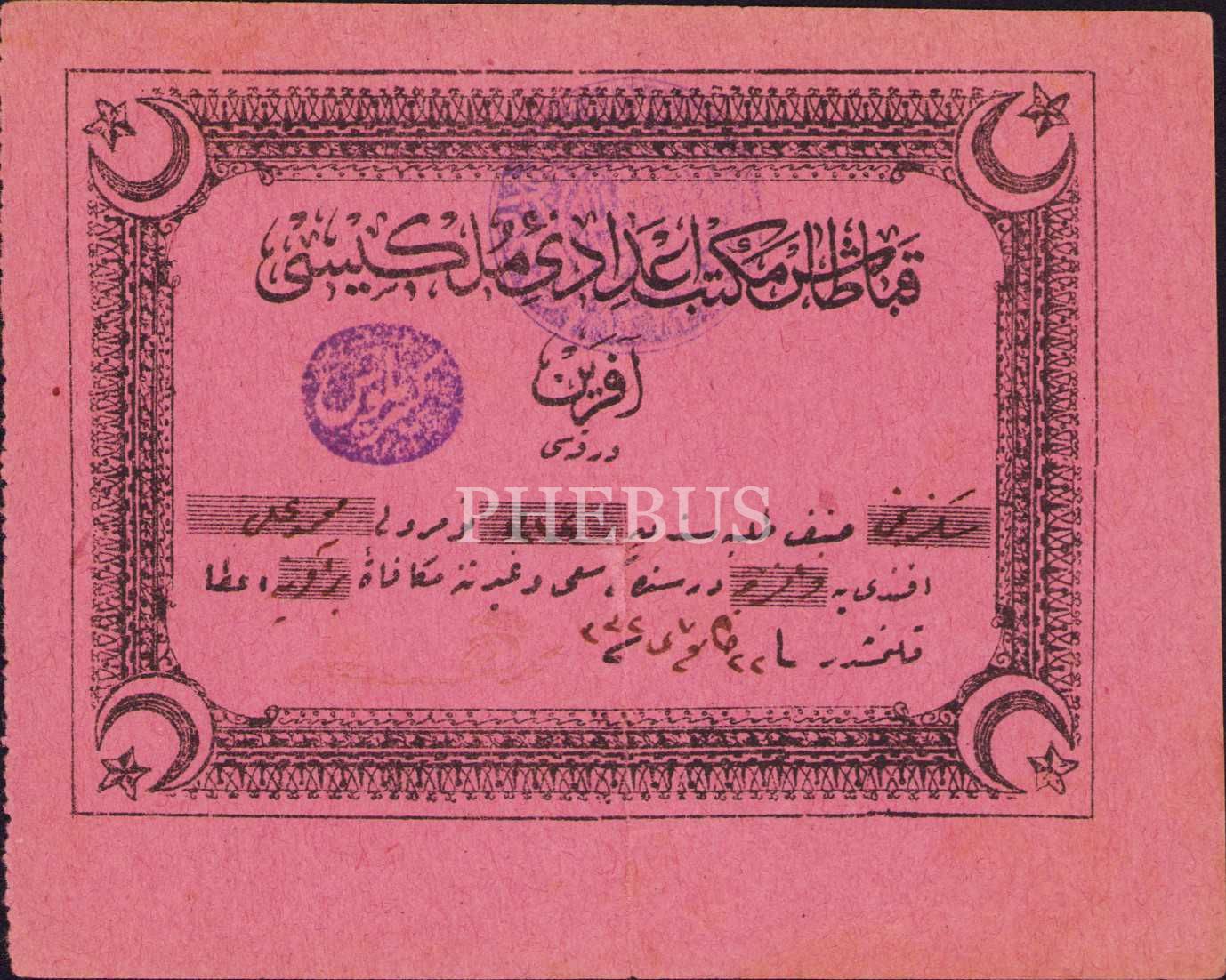 Osmanlıca aferin kağıdı, Kabataş Lisesi, 1332, 9x12 cm, arkası yazılı, haliyle