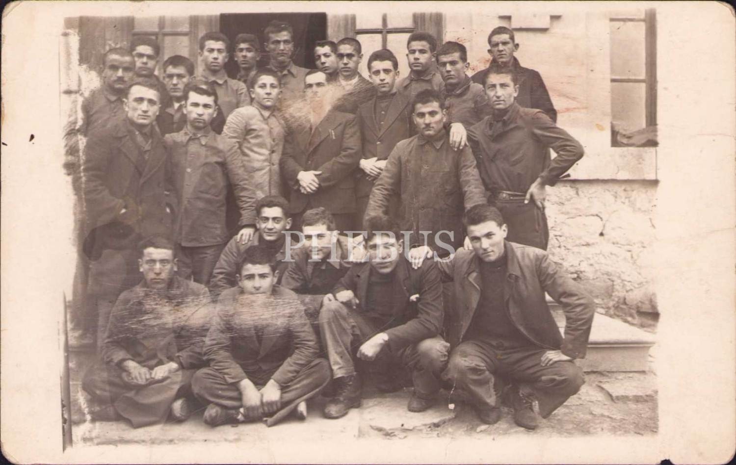Mektep talebeleri ve muallimleri, yüzey üzerinde kırıklar mevcut, haliyle