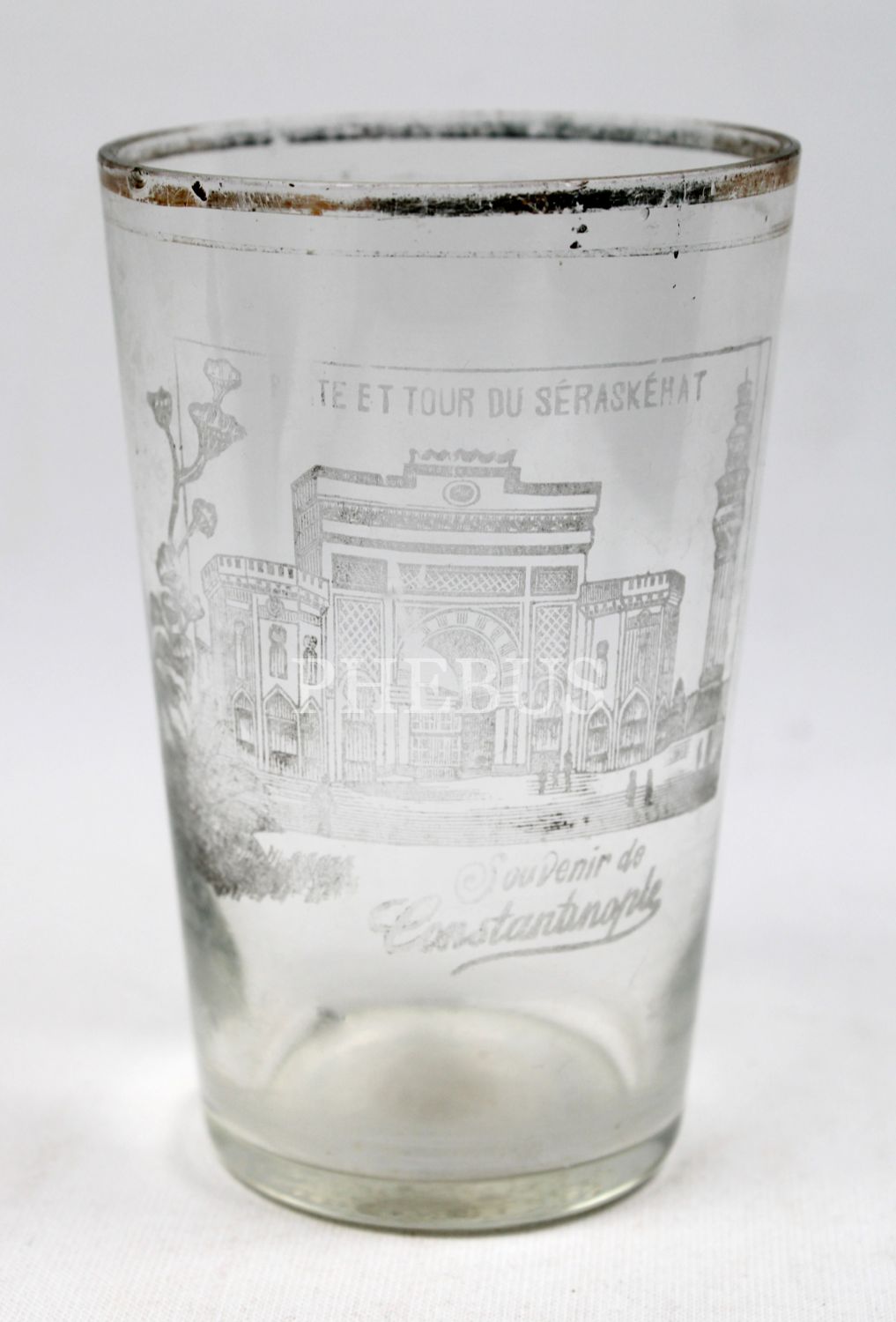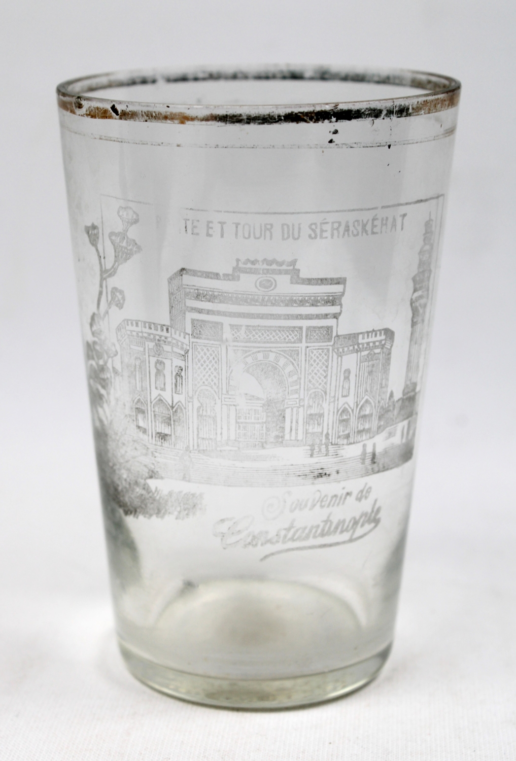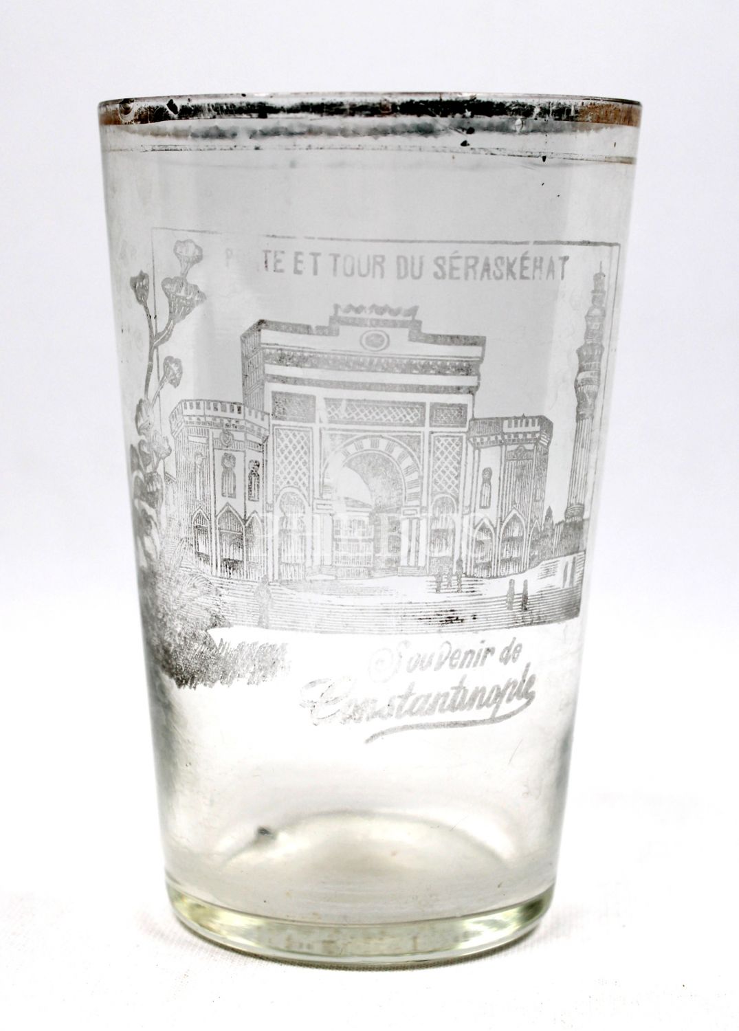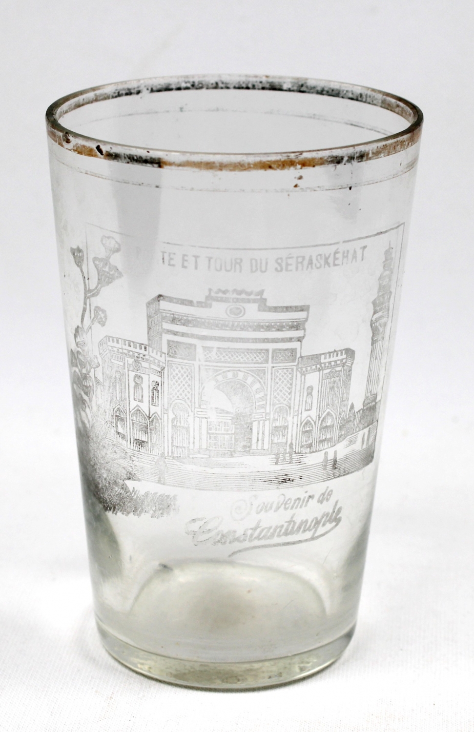 Souvenir de Constantinople, İstanbul Üniversitesi Beyazıt Yangın Kulesi görselli Osmanlı su bardağı, 7x12cm
