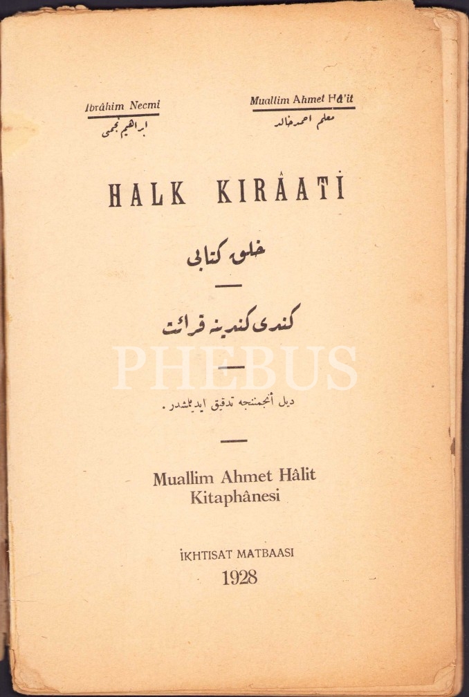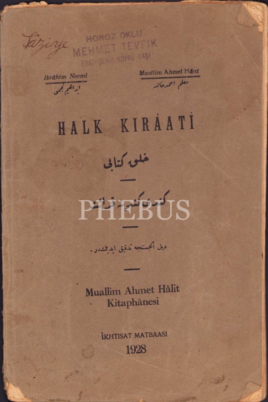 Halk Kıraati, İbrahim Necmi - Muallim Ahmet Haut, Muallim Ahmet Halit Kitaphanesi, İktisat Matbaası - 1928, 46 sayfa, 15x23 cm, haliyle