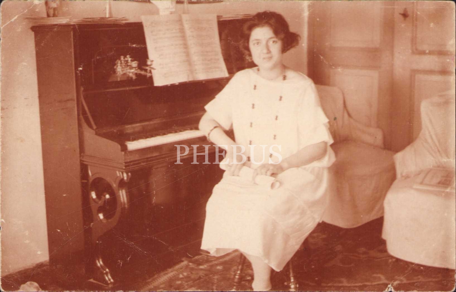 Erken cumhuriyet döneminden piyanosu başında poz vermiş bir genç kız fotoğrafı