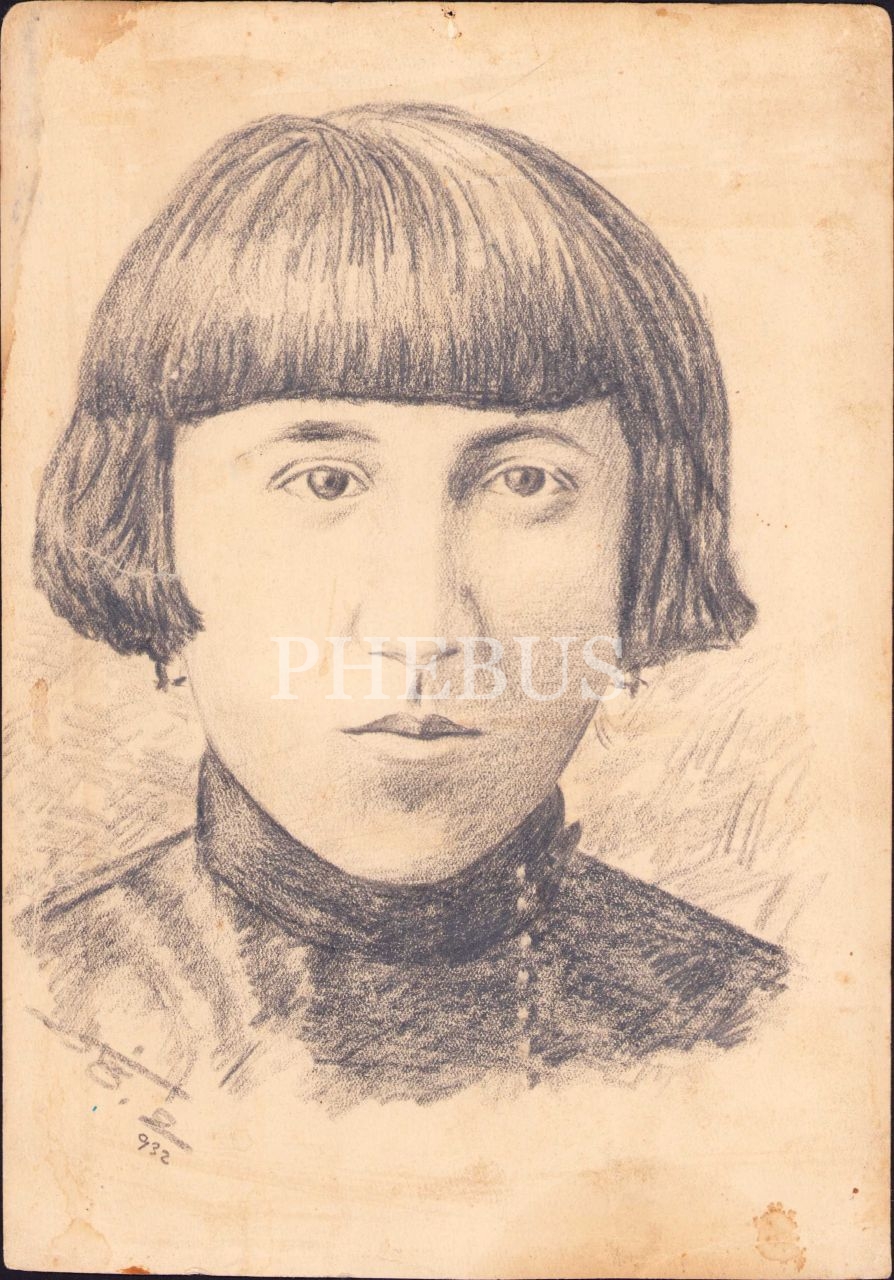 1932 tarihli, Osmanlıca imzalı karakalem kadın çizimi, 18x25 cm