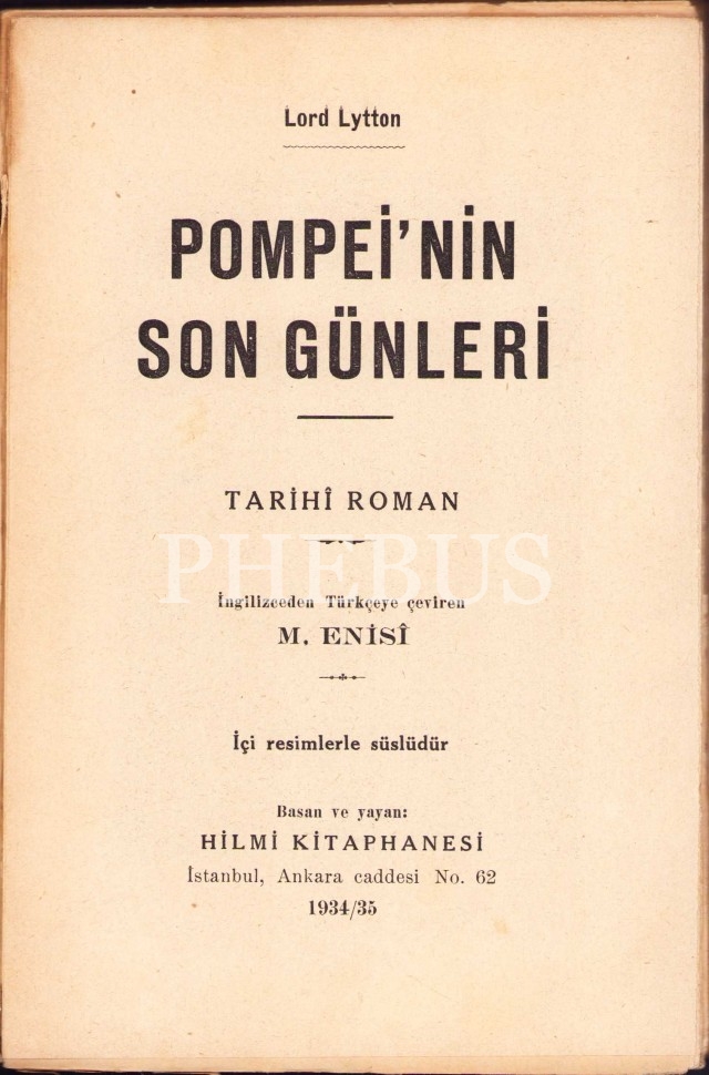 Pompei'nin Son Günleri, Lord Lytton, Çeviren: M. Enisi, Hilmi Kitaphanesi, 1934/35, sayfaları açılmamış, haliyle