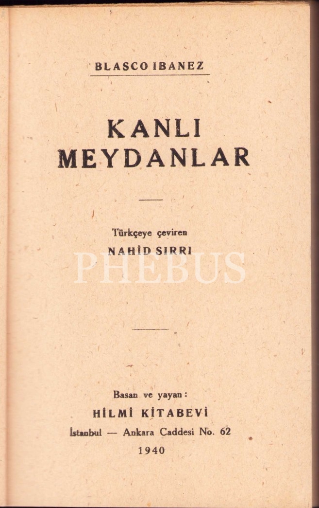 Kanlı Meydanlar, Blasco Ibanez, Çeviren: Nahid Sırrı, Hilmi Kitap Evi, 1940