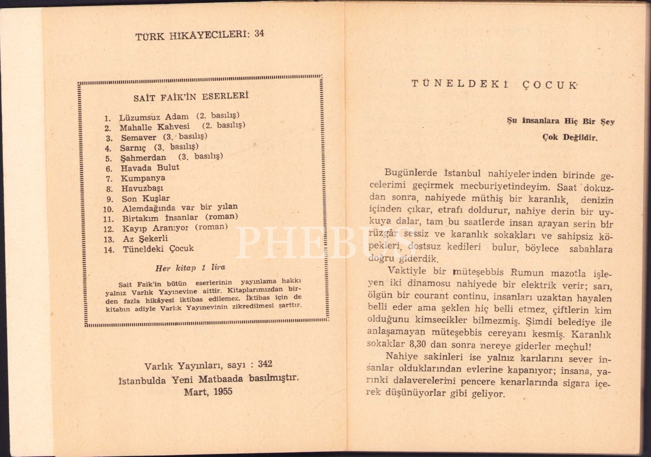 Tüneldeki Çocuk, Sait Faik, Varlık Yayınları, Mart 1955