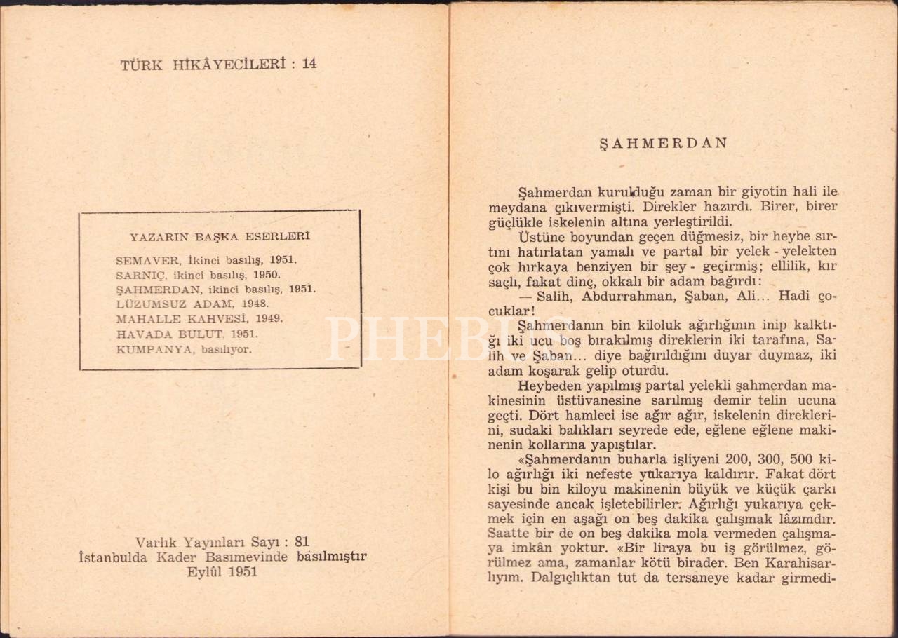 Şahmerdan, Sait Faik, Varlık Yayınları, Eylül 1951