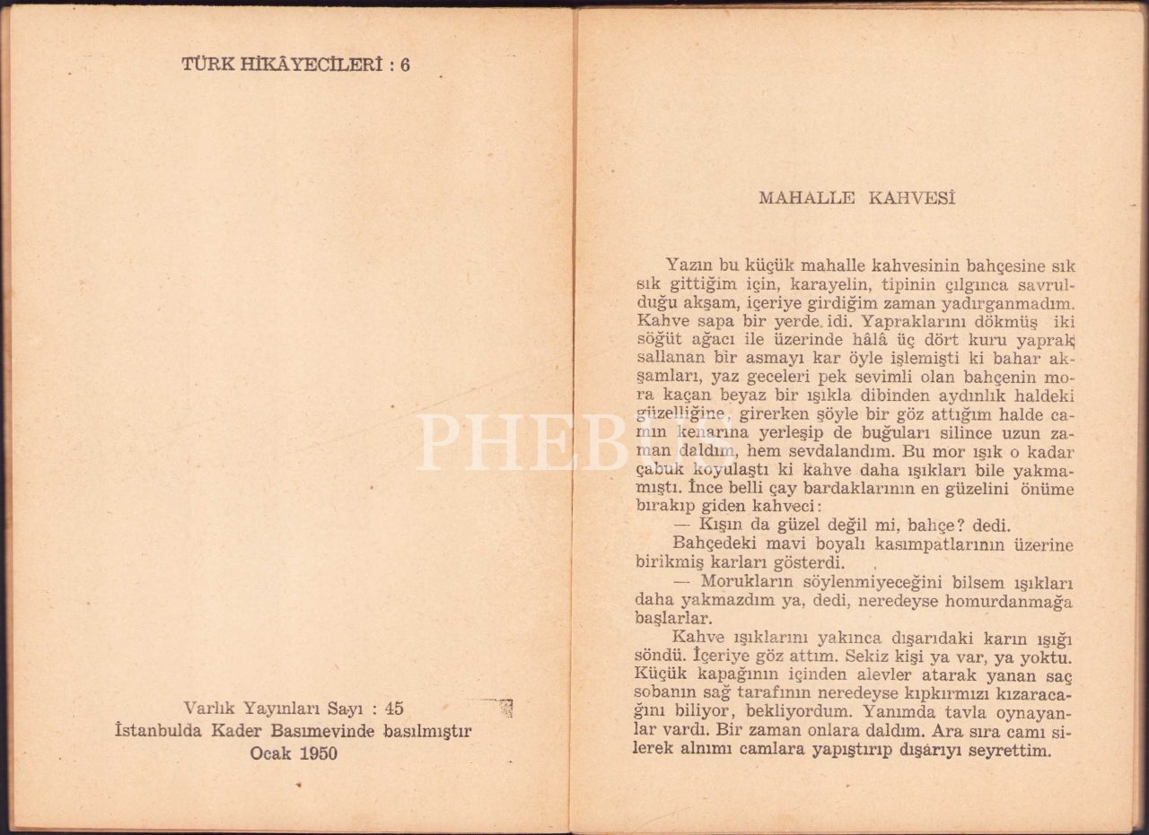Mahalle Kahvesi, Sait Faik, Varlık Yayınları, Ocak 1950