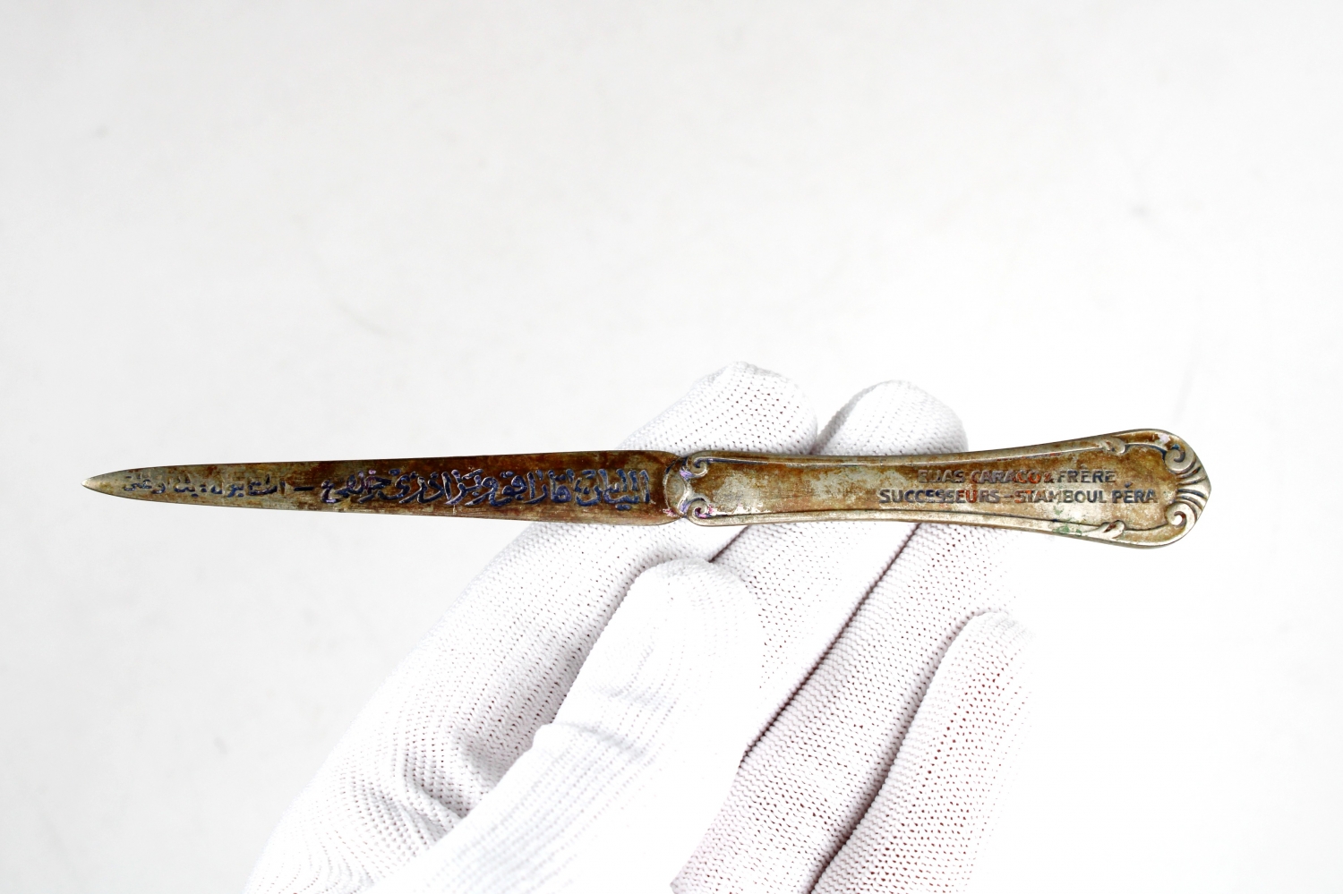 Yahudi Elias Caraco & Frere Osmanlıca Fransızca 2 dilde yazılı mektup açacağı, 15cm