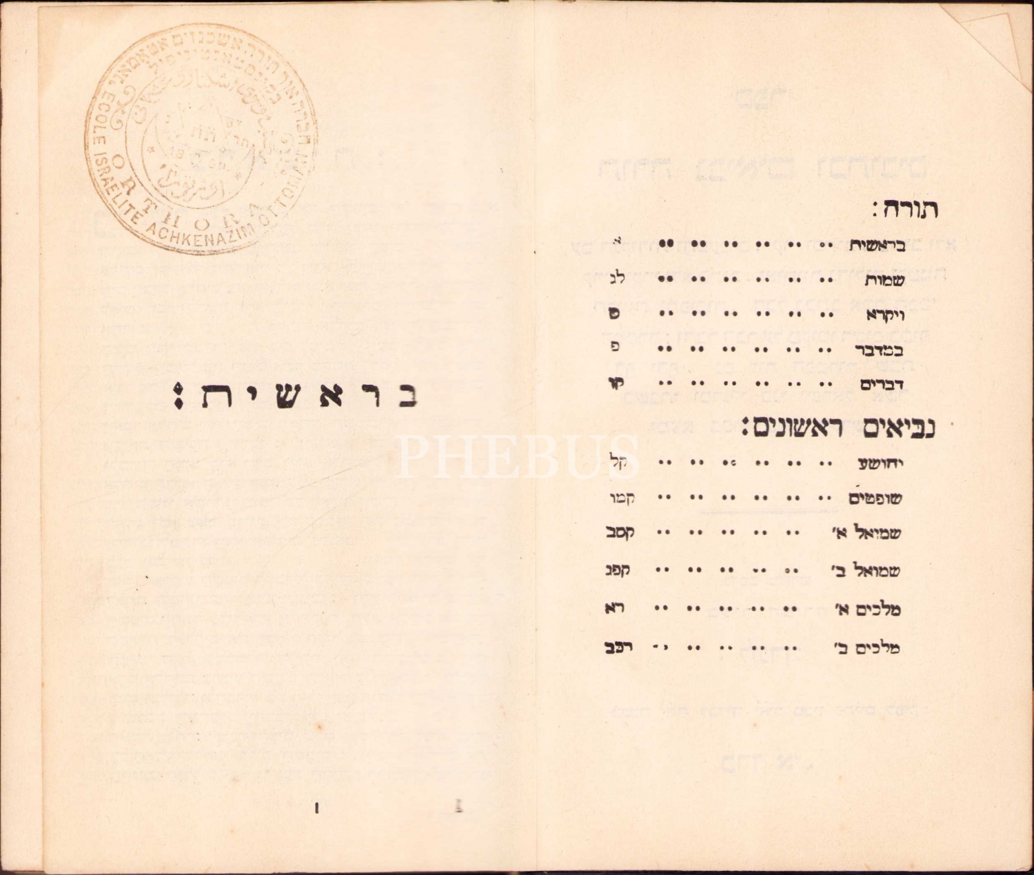 İbranice kitap, Ecole Israelite Achkenazim Ottoman damgalı, 12x18 cm