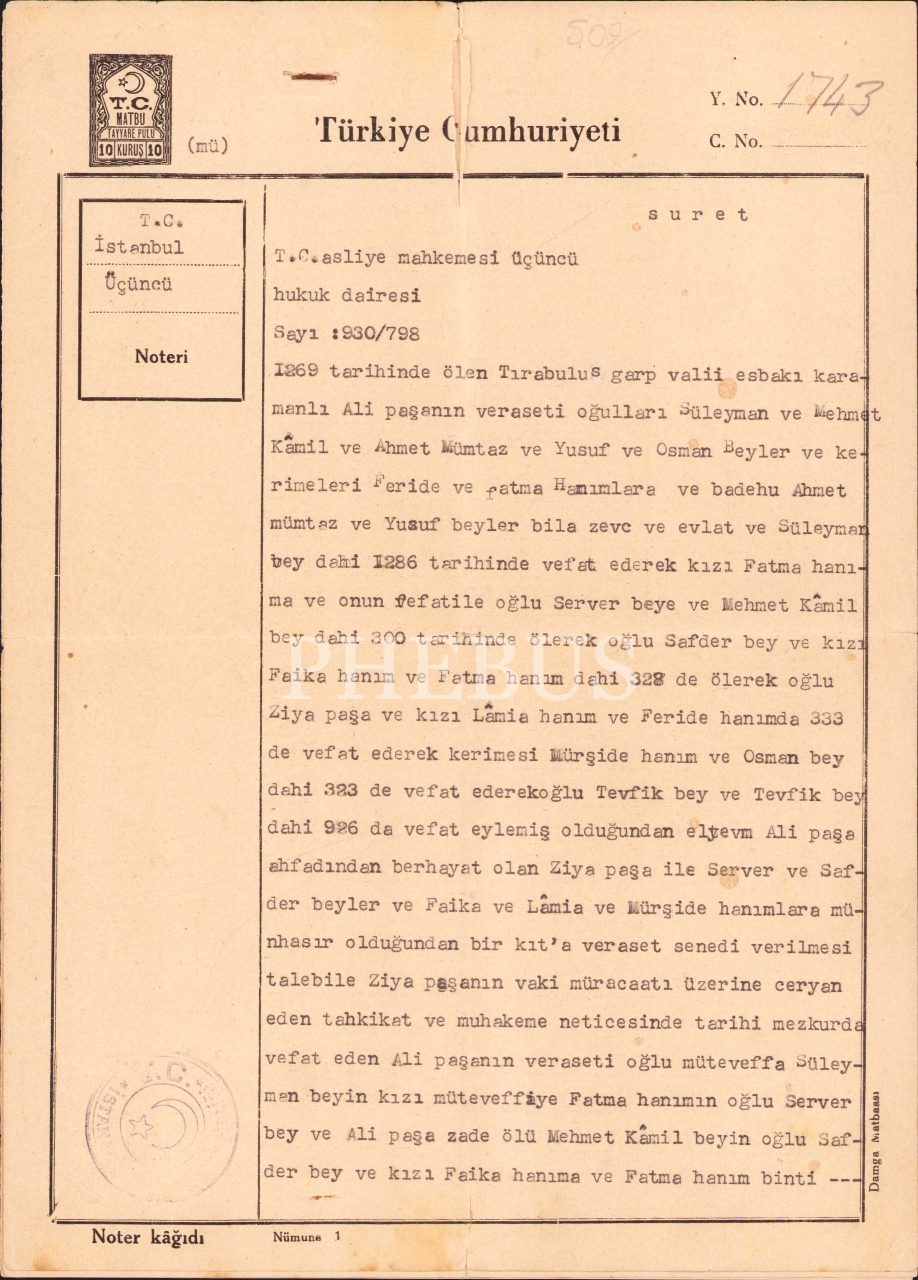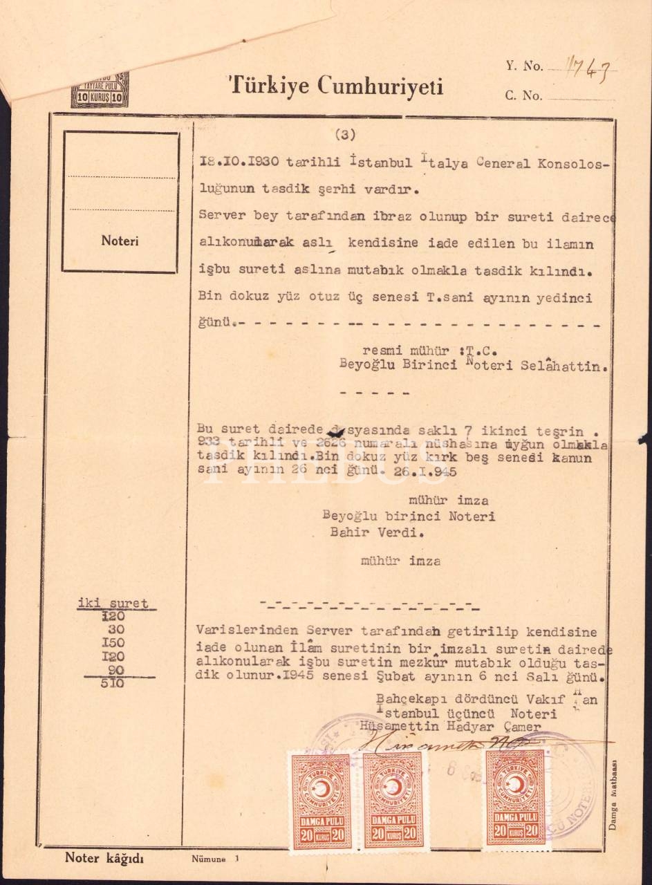 Türkiye Cumhuriyeti antetli noter kağıdı, İstanbul, 20x29 cm