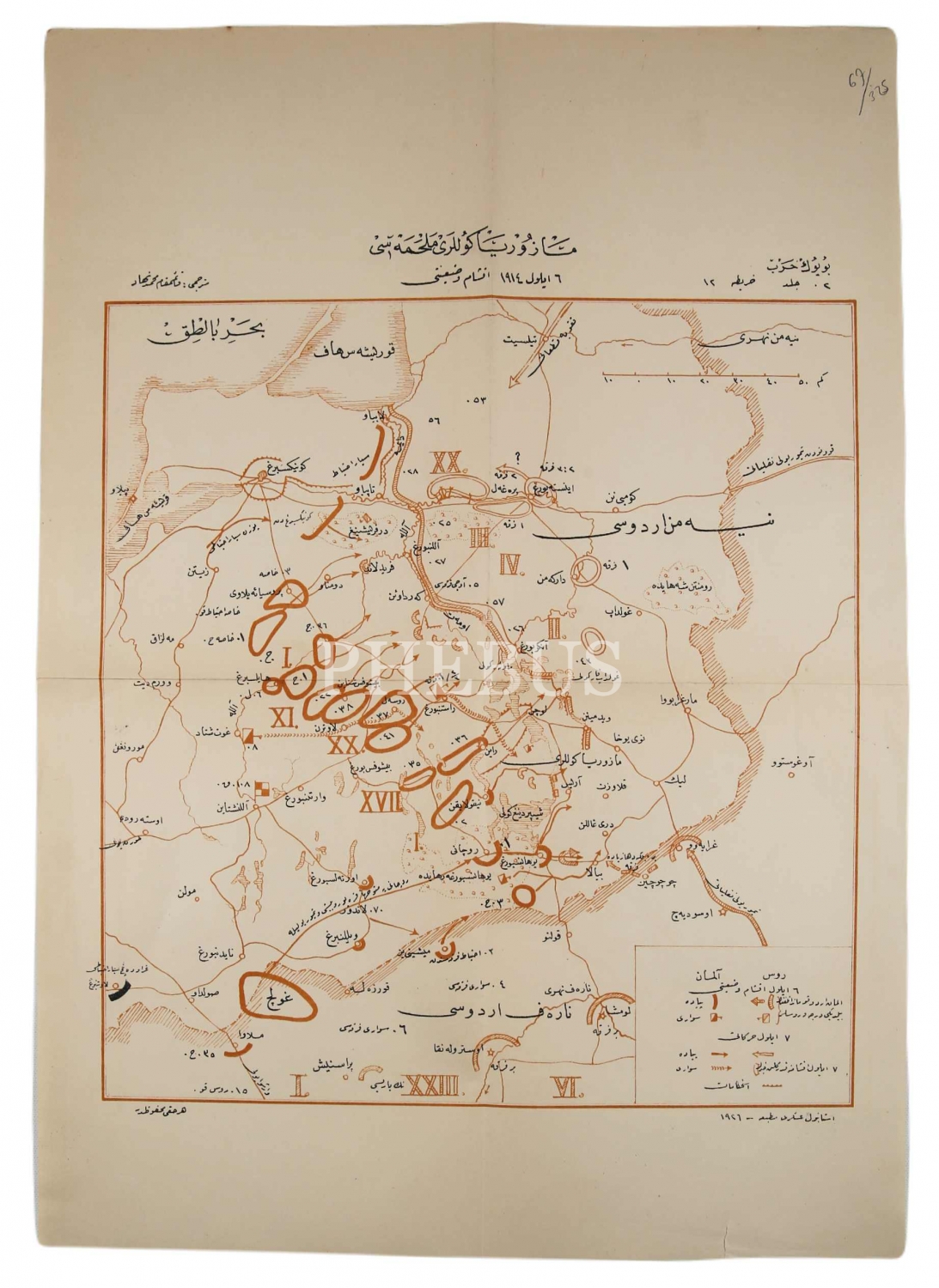 Osmanlıca Mazurya Gölleri Melhamesi savaş haritası, İstanbul Askerî Matbaa, 1926, 33x48 cm