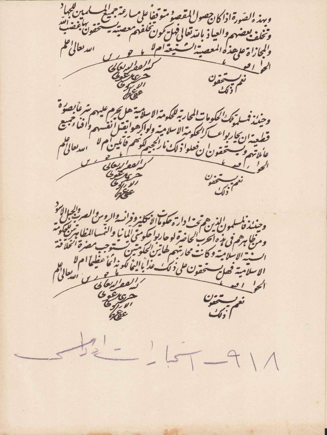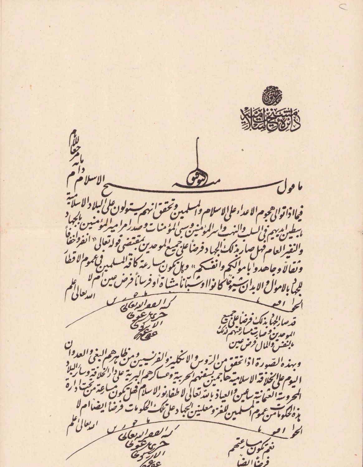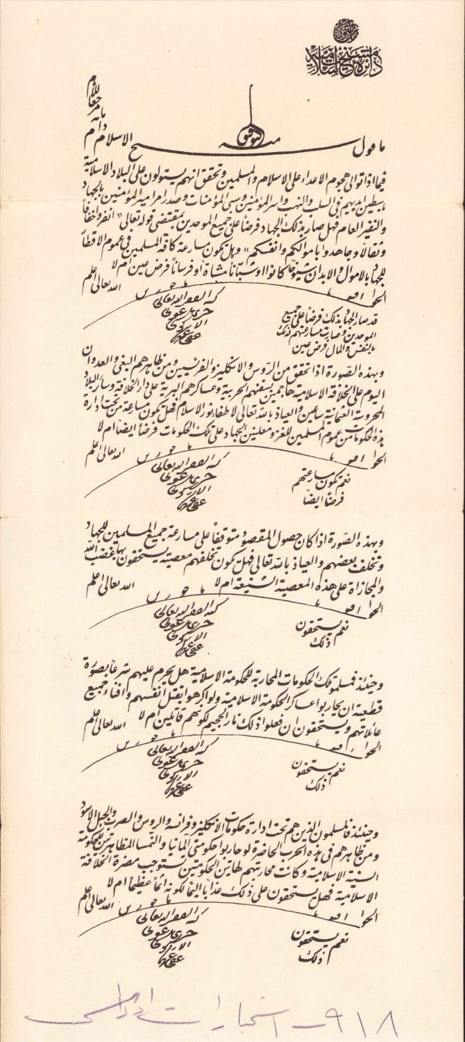 Birinci Dünya Savaşı Milli Mücadele için fetvayı şerif, 19x50cm