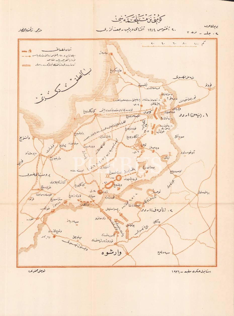 Osmanlıca 1914'de Alman cephesi savaş haritası, İstanbul Askerî Matbaa-1926, 30x40 cm