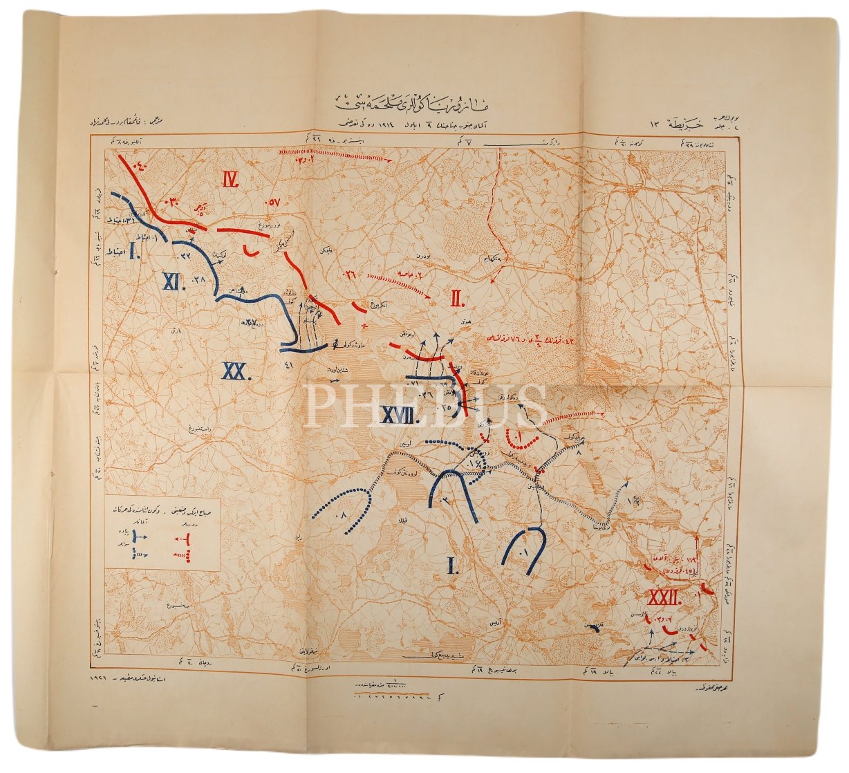 Osmanlıca Mazurya Gölleri Melhamesi'nin 1914'teki durumunu gösterir savaş haritası, İstanbul Askerî Matbaa, 1926, 50x55 cm