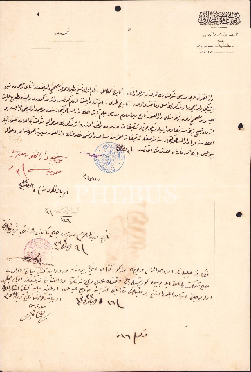 Halim Sabit Bey'in Dârü'l-Mesâi Kütüphanesi dışında başka bir yerde nüshası bulunmayan bir eserin kullanımı için izin çıkarılmasına dair.