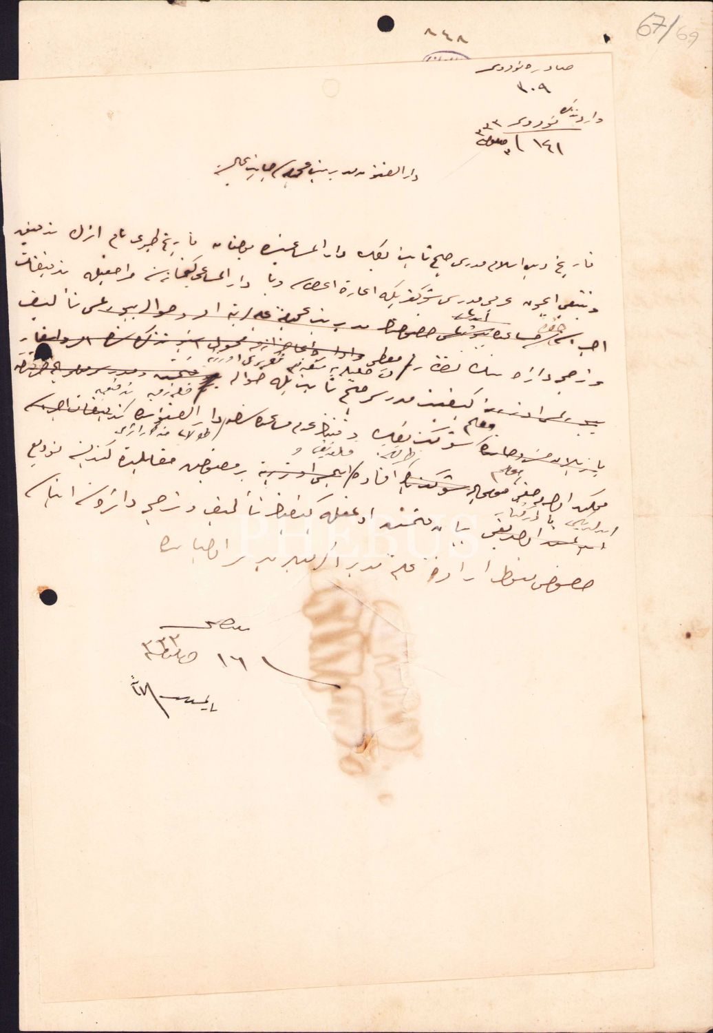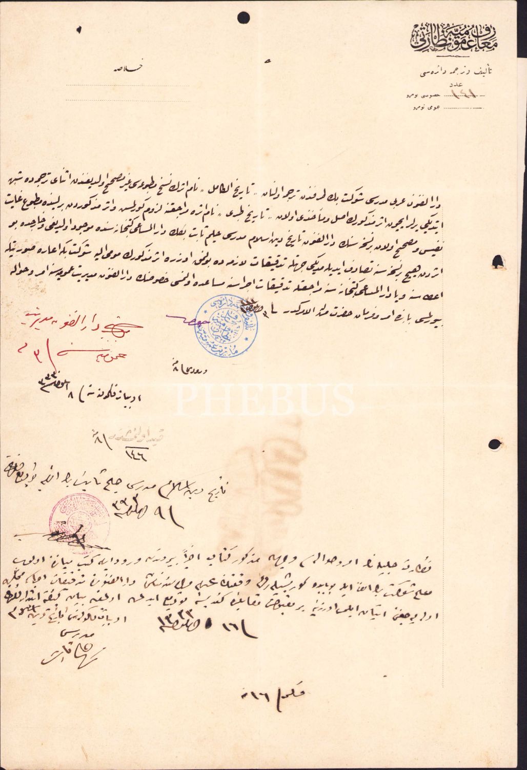 Osmanlıca Maarif-i Umumiyye Nezareti antetli dilekçe aslı ve müsveddesi, 1333, 22x33 cm, müsveddesi haliyle