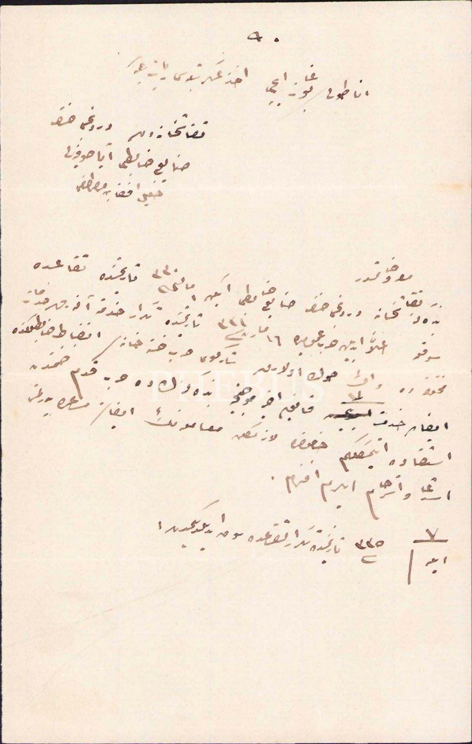 Osmanlıca Anadolu Boğaziçi Asker Alım Şubesi Başkanlığı'na gönderilmiş 1335 tarihli bir dilekçe, 13x20 cm
