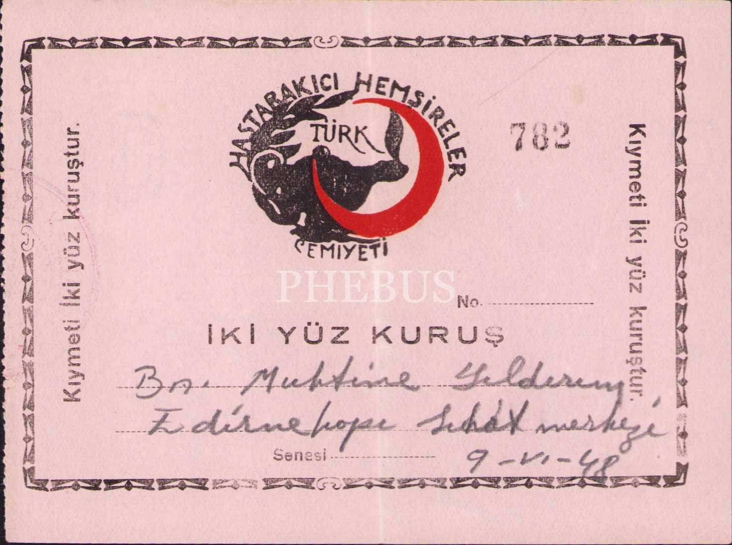 Türk Hastabakıcı Hemşireler Cemiyeti antetli evrak, 9x12 cm