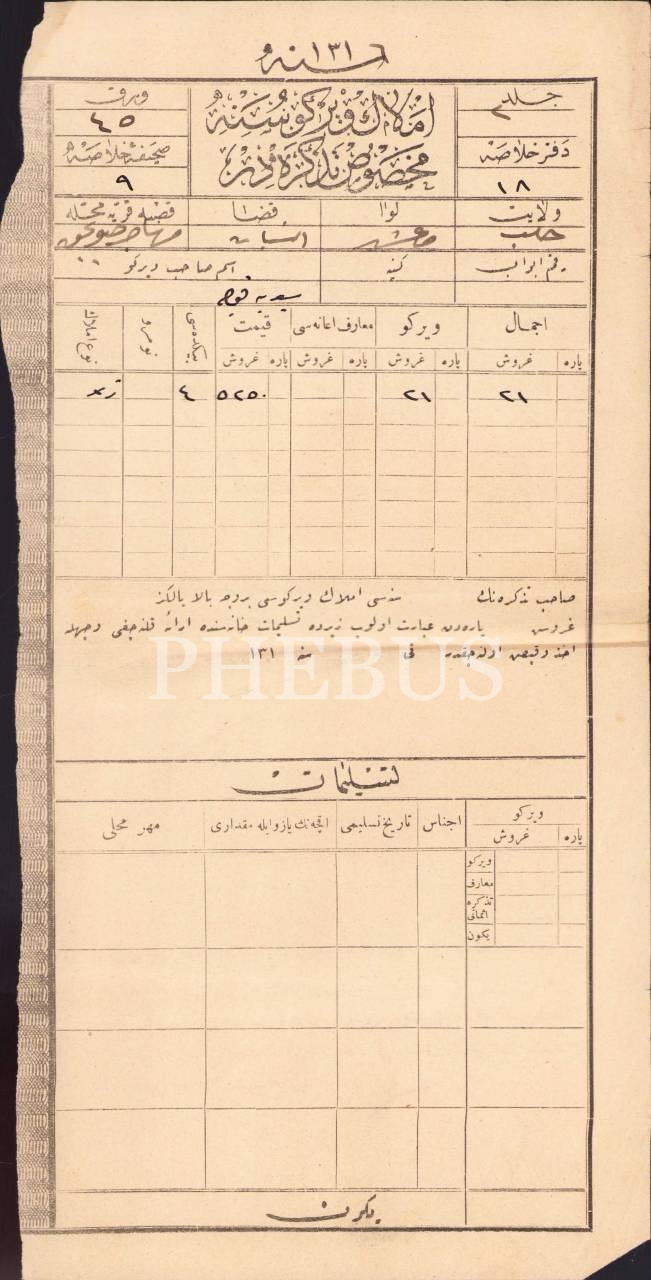 Osmanlıca emlak vergisi makbuzu, Haleb/Suriye, 1316, 14x28 cm