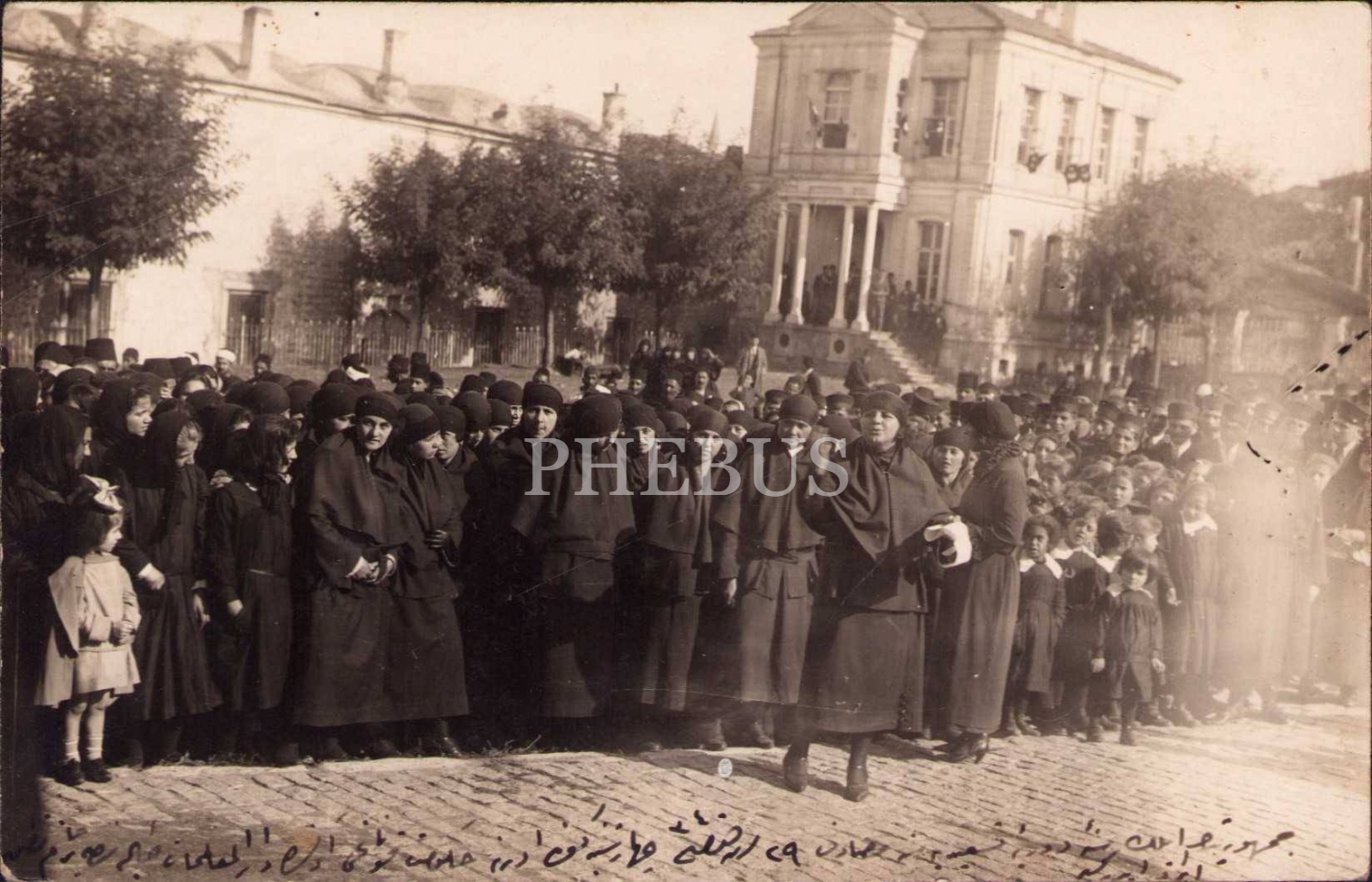 Osmanlıca yazılı, Cumhuriyet'in ilk sene kutlamalarında Edirne Hükümet Konağı önünde hatıra fotoğrafı