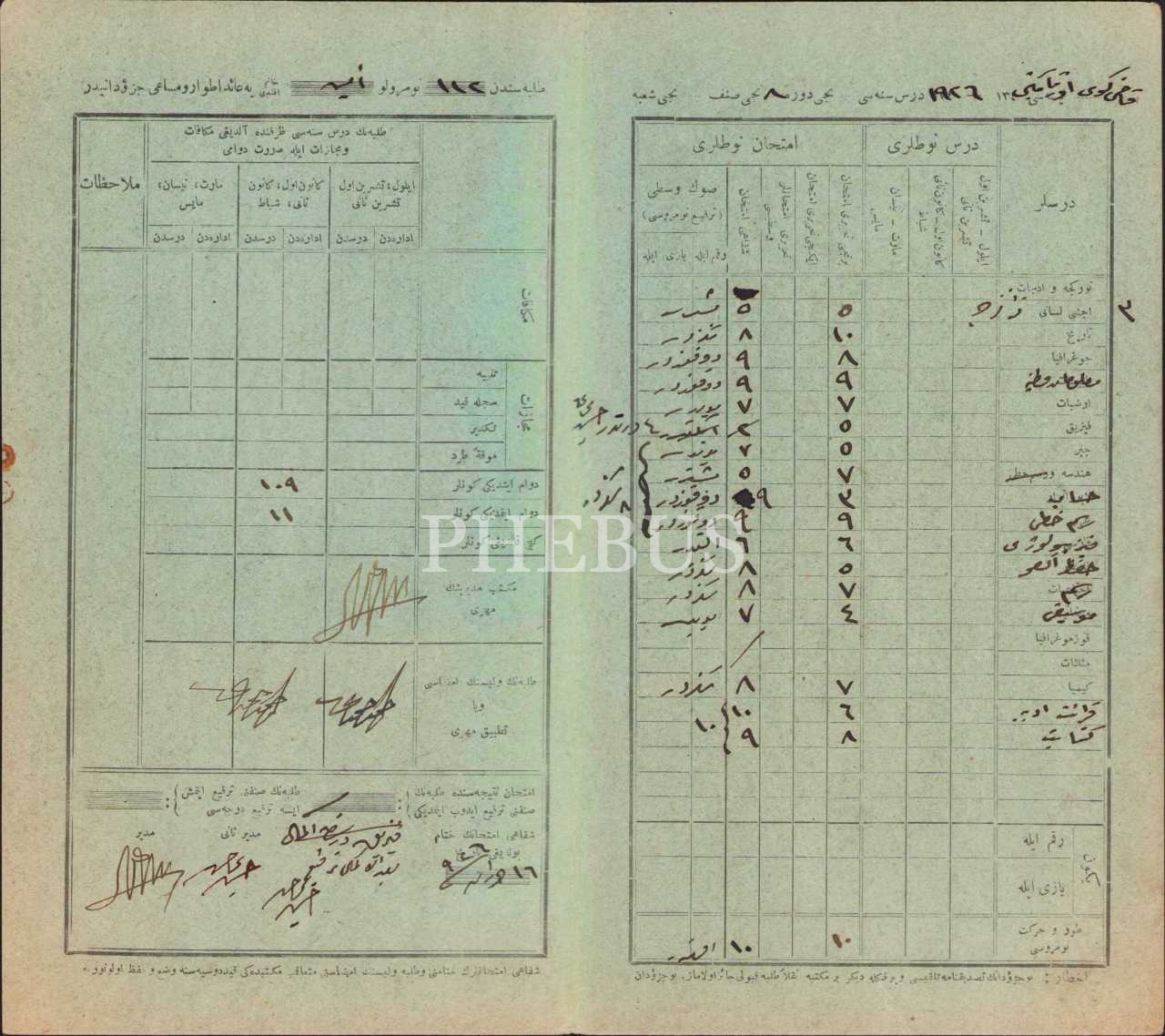 Osmanlıca etvâr ve mesâi cüzdanı [öğrenci karnesi], Kadıköy Ortaokulu, 1926, 22x24 cm