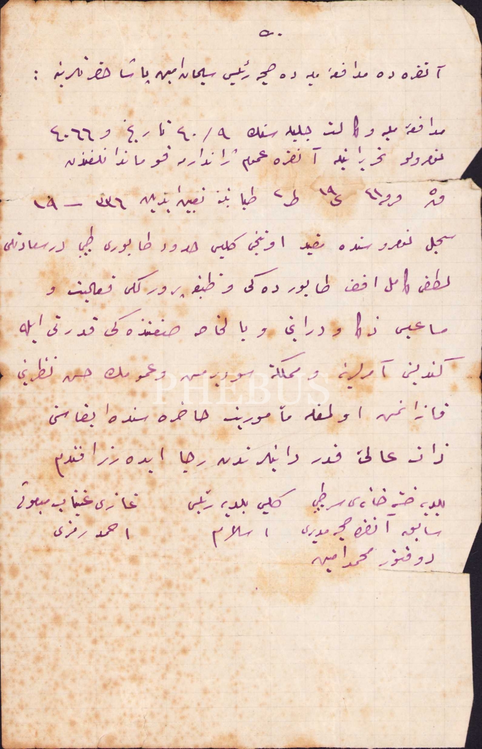 Osmanlıca Ankara'da Müdafaa-i Milliye'de Sıhhiye Reisi Süleyman Emin Paşa'ya yazılmış rica mektubu, 13x21 cm, haliyle