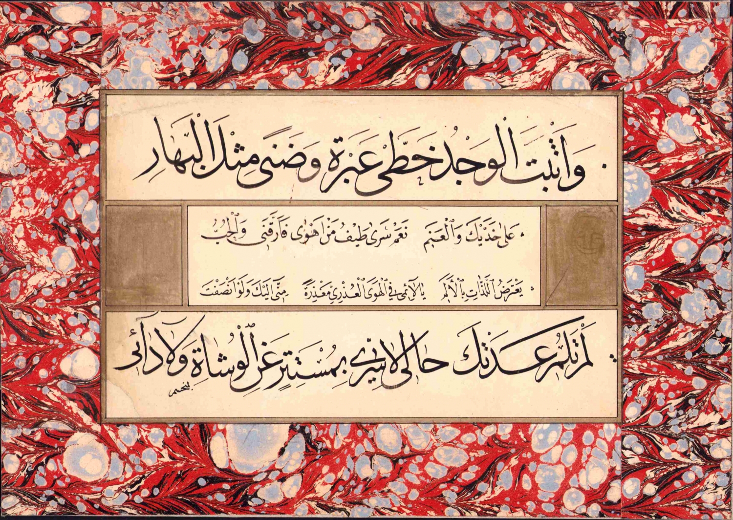Hat Levha, Sülüs - nesih meşk, pervazları ebrulu ve yaldız cetvelli, Ebat: 30x21cm (Yazı: 21x14cm)