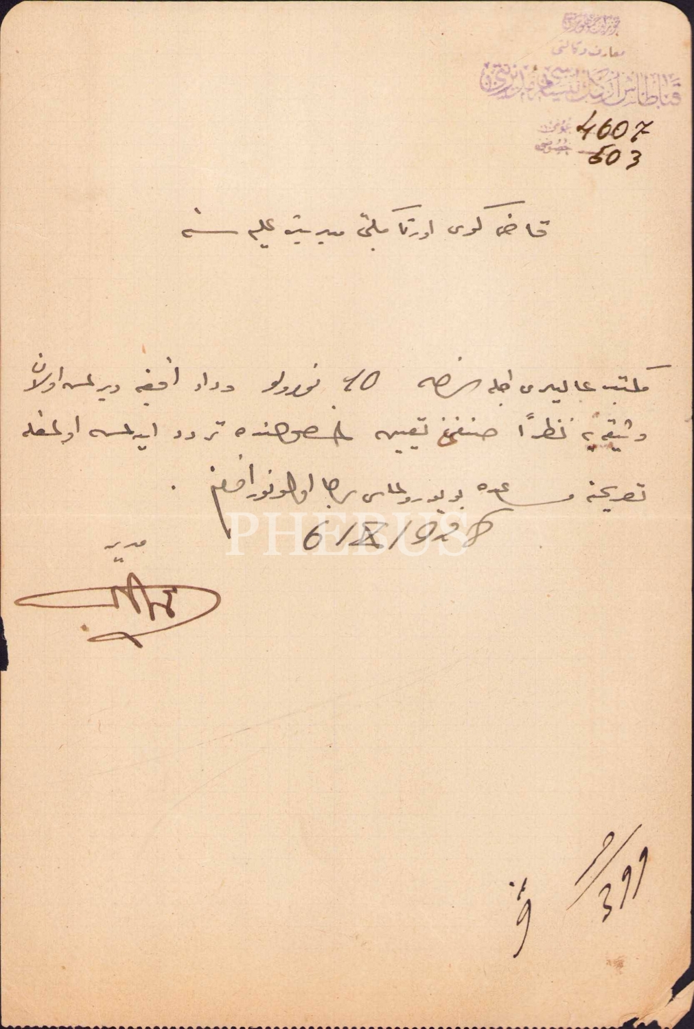 Osmanlıca Kadıköy Ortaokul Müdürlüğü'ne yazılmış dilekçe, 1928, 14x21 cm