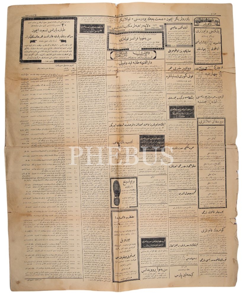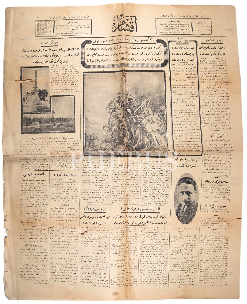 Osmanlıca Akşam gazetesi, 30 Ağustos 1926, 55x68 cm, haliyle