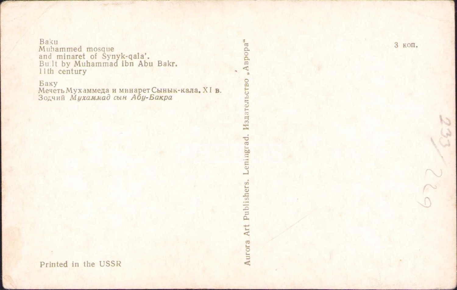 Bakü/Azerbaycan - Muhammed Cami ve Siniggala Minaresi, Sovyetler Birliği baskı, haliyle