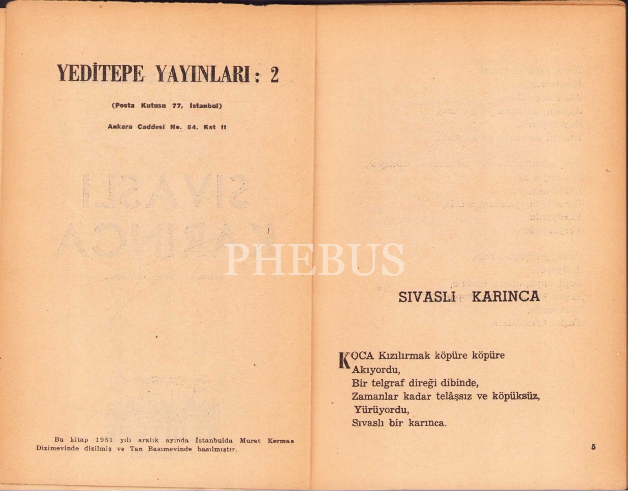 Sivaslı Karınca, Fazıl Hüsnü Dağlarca, Yeditepe Yayınları, İstanbul 1951, 62 syf., 12x17 cm