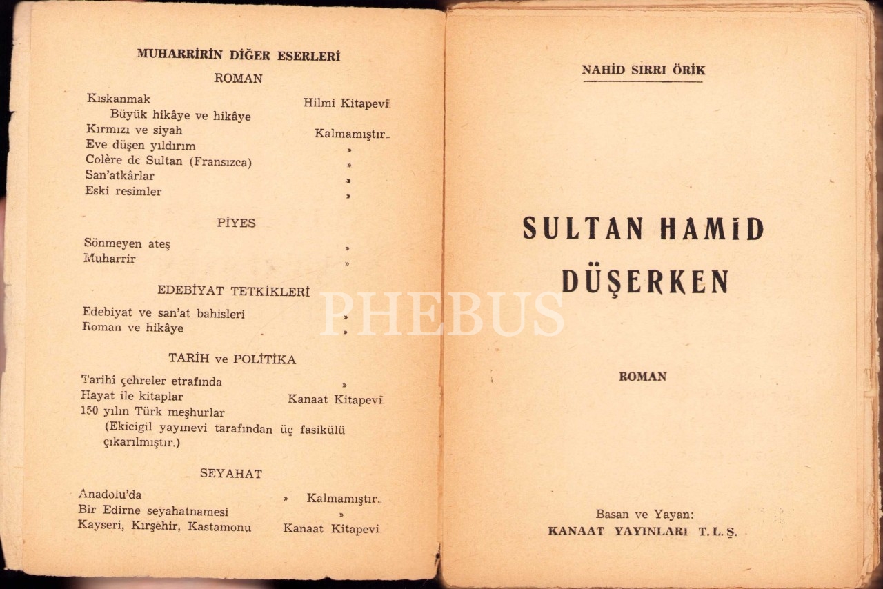 Sultan Hamid Düşerken, Nahid Sırrı Örik, Kanaat Yayınları, İstanbul 1957, 320 syf., 13x17 cm, sırtı haliyle