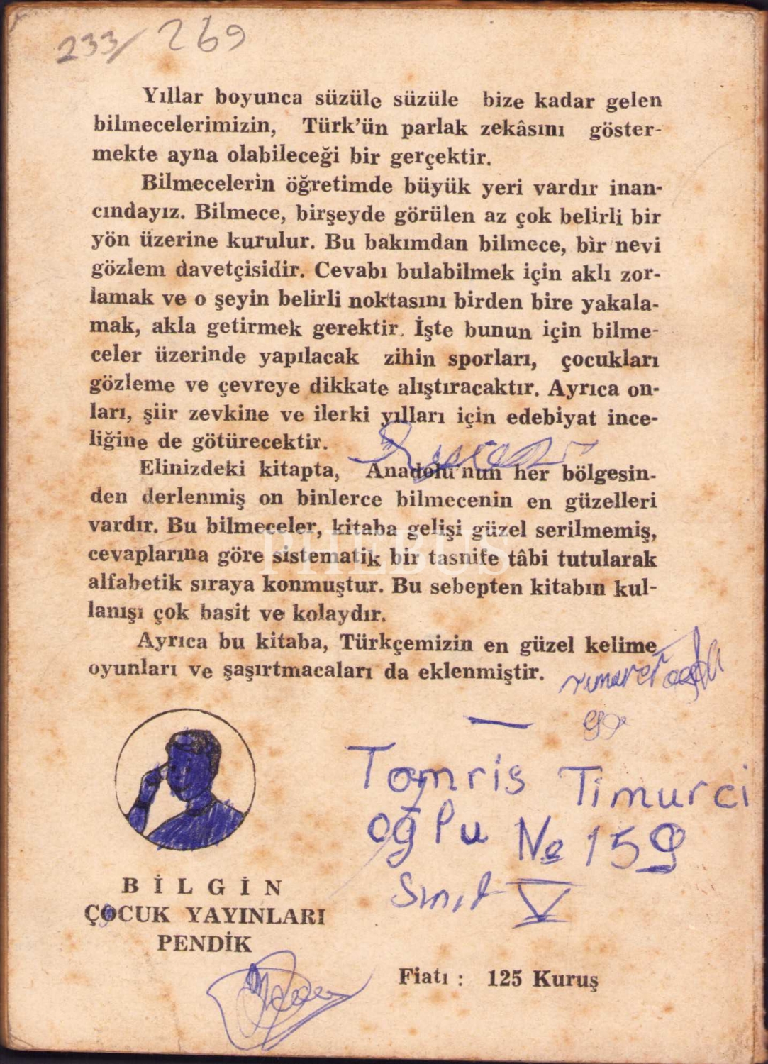 Bilmeceler Bildirmeceler, Cemal Erten, Bilgin Çocuk Yayınları Pendik, İstanbul 1959, 64 syf., 12x16 cm
