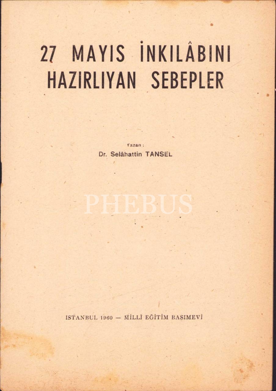 27 Mayıs İnkılâbını Hazırlıyan Sebepler, Selahattin Tansel, Milli Eğitim Basımevi, İstanbul 1960, 20 syf., 17x23 cm