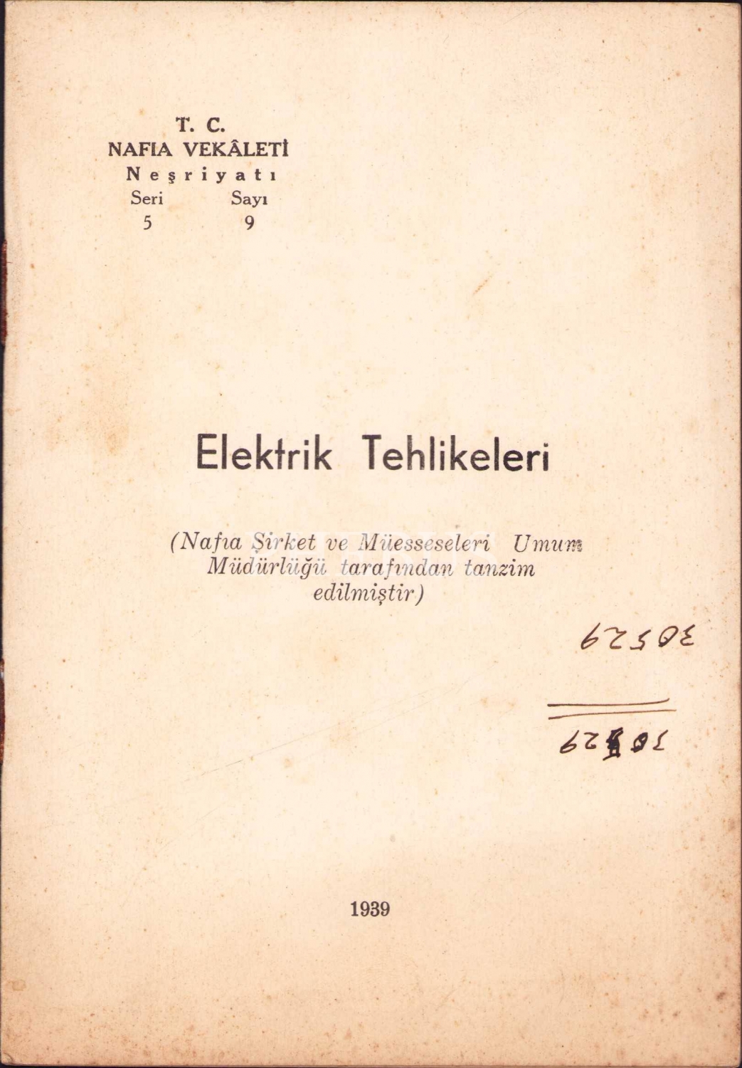 Nafia Vekaleti Neşriyatı'ndan Elektrik Tehlikeleri, 1939, 14 syf., 14x20 cm