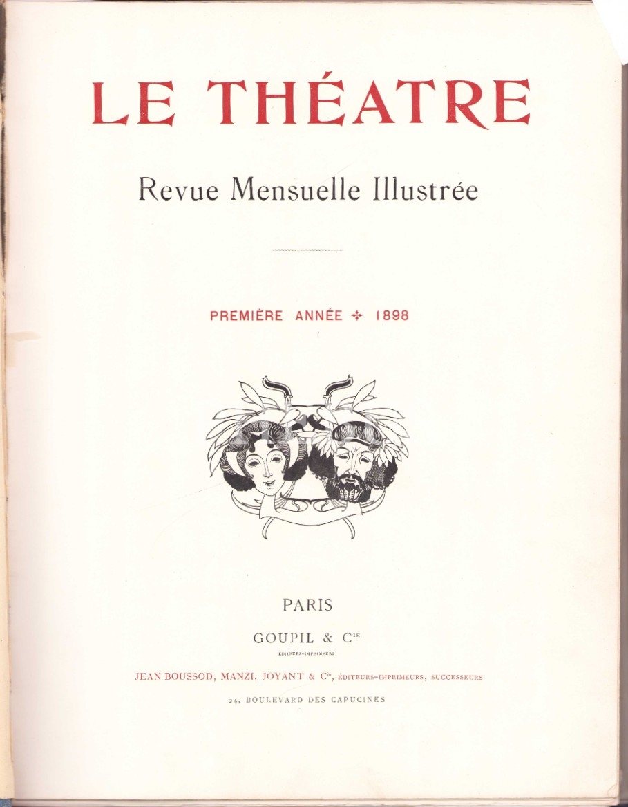 Fransızca Le Theatre dergisi, 11 sayı tek ciltte, Paris 1898, 29x37 cm, sayfa eksikleri mevcuttur, haliyle