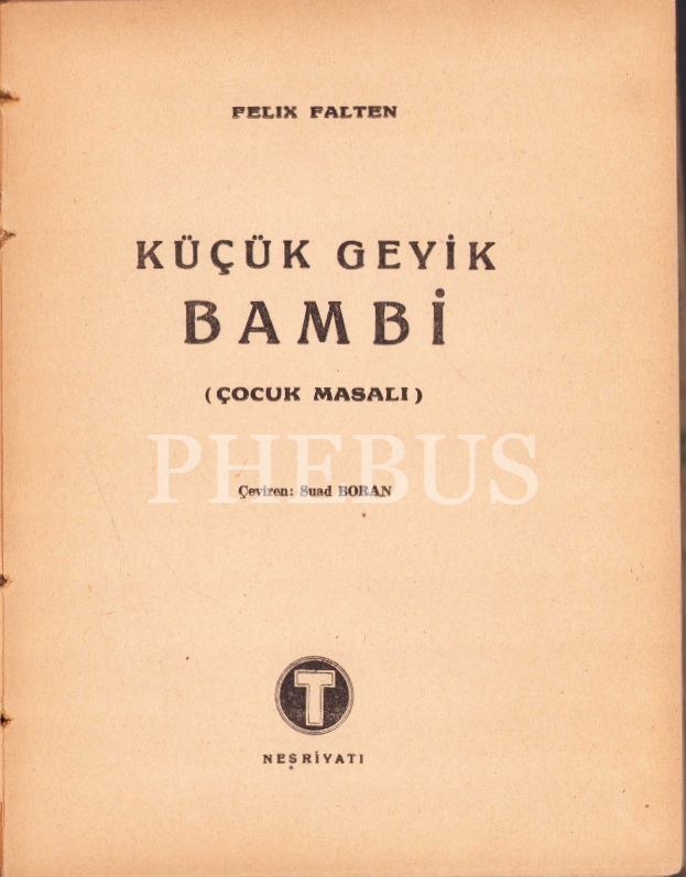 Küçük Geyik Bambi, Felix Falten, Çev. Suad Boran, Tasvir Neşriyatı, 159 syf., 18x24 cm