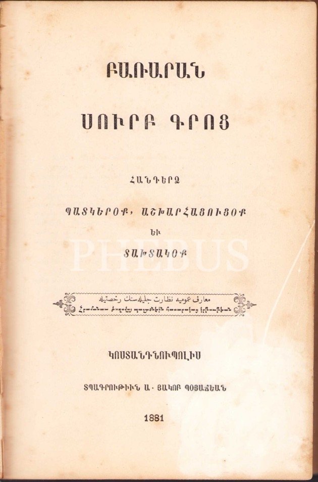 Ermenice kitap, İstanbul 1881 baskı, 635 syf., 14x19 cm