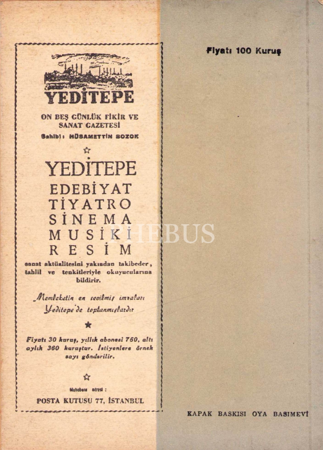 Oktay Akbal'ın "Bizans Definesi", İlk Baskı, 1953, Yeditepe Yayınları, 78 sayfa, 12x17 cm