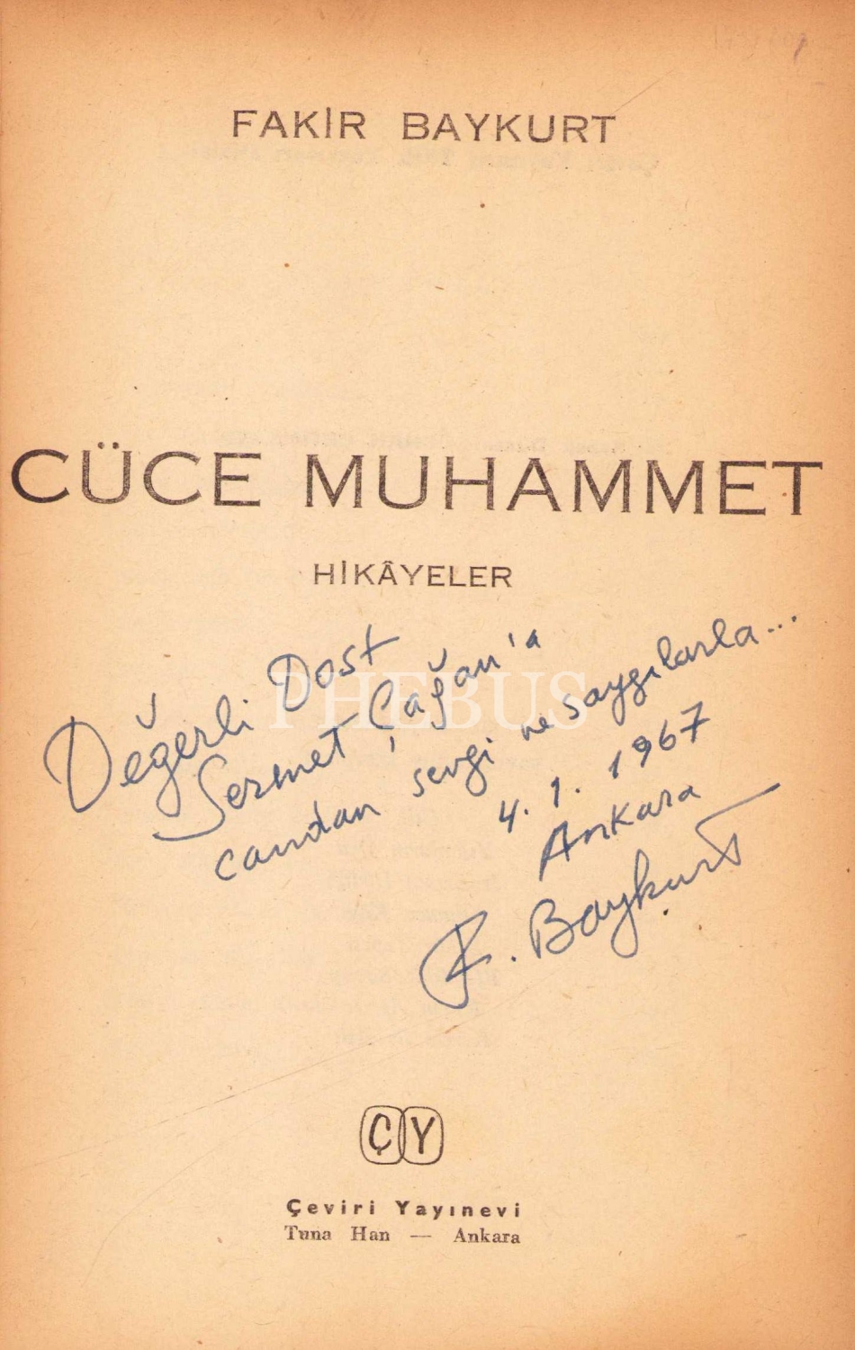 Yazar Fakir Baykurt'dan İmzalı ve İthaflı "Cüce Muhammet", İlk Baskı, 1964, Çeviri Yayınevi, ön kapak kopuk vaziyette, 176 sayfa
