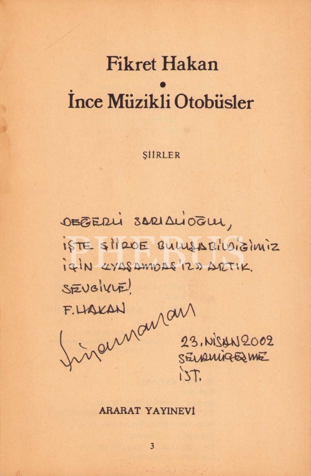 Fikret Hakan'dan İmzalı ve İthaflı "İnce Müzikli Otobüsler", Ararat Yayınevi, 93 sayfa
