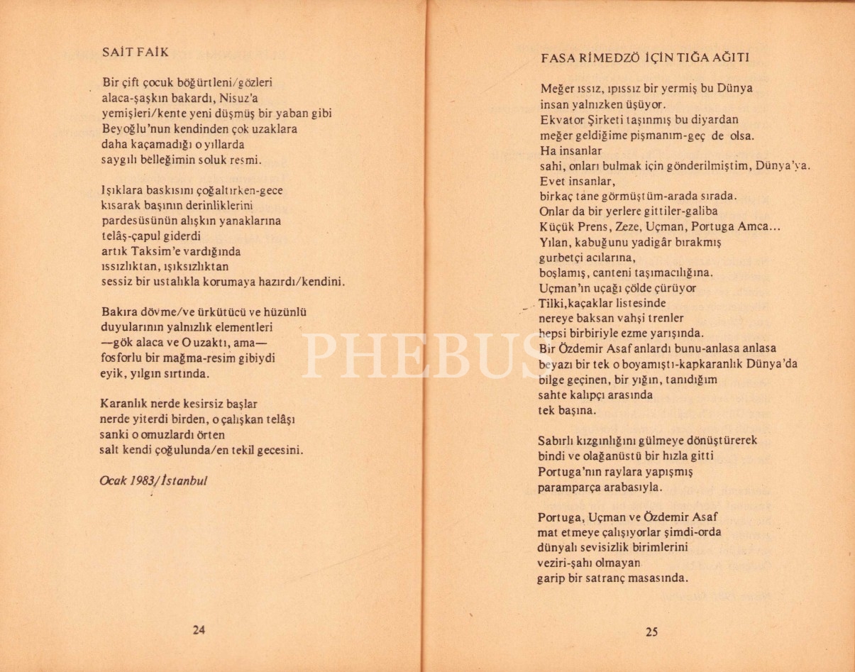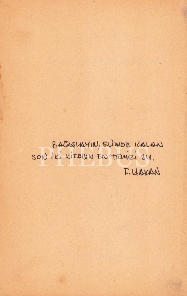 İthaf " Kenan Sarıalioğlu için/ bağışlayın, elimde kalan son iki kitabın en temizi bu/ Değerli Sarıalioğlu işte şiirde buluşabildiğimiz için yaşamdaşız artık. Sevgiyle F. Hakan" şeklindedir. Tiyatro ve sinema sanatçısı Fikret Hakan'ın gerçek ismi Bumin Gaffar Çıtanak'dır. 23 Nisan 1934 tarihinde Gaffar ve Fatma Belkıs çiftinin çocuğu olarak Balıkesir'de doğdu. Fikret Hakan'ın annesi başhemşire, babası edebiyat öğretmeniydi. Fikret Hakan'ın babası Gaffar Bey, Balıkesirden İstanbul'daki Galatasaray Lisesi'ne edebiyat öğretmeni olarak atanınca, başhemşire annesiyle hep birlikte İstanbul'a taşındılar. Bumin (Fikret Hakan), lisede okurken gazeteciliğe heves etti. Bumin'in Abdi İpekçi, Halit Kıvanç gibi sonrae çalıştığı, Mithat Perin'in sahibi olduğu, İstanbul Ekspres Gazetesi'nde röportajları, öyküleri yayımlanıyordu. Gazeteden aldığı Öykü başına bir liralar, onu büsbütün okuldan uzaklaştırdı. Taksim Lisesi birinci sınıfından ayrıldığında 16 yaşındaydı ve aynı yıl 1950 yılında 'Üç Güvercin' adlı operetinde palyaço rolüyle 'Ses Tiyatrosu'nda tiyatro sahnelerine ilk adımını attı. Bu arada adını değiştirip Fikret Hakan yaptı. Leblebici Horhor ve Afrodit'te oynadı.