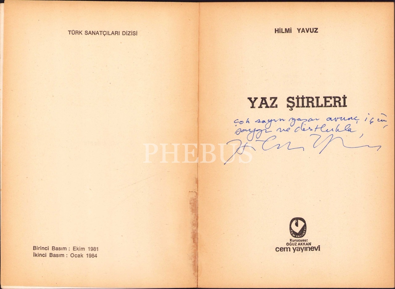 Hilmi Yavuz'dan İmzalı ve İthaflı "Yaz Şiirleri", İkinci Baskı, 1984, Cem Yayınları, 70 sayfa